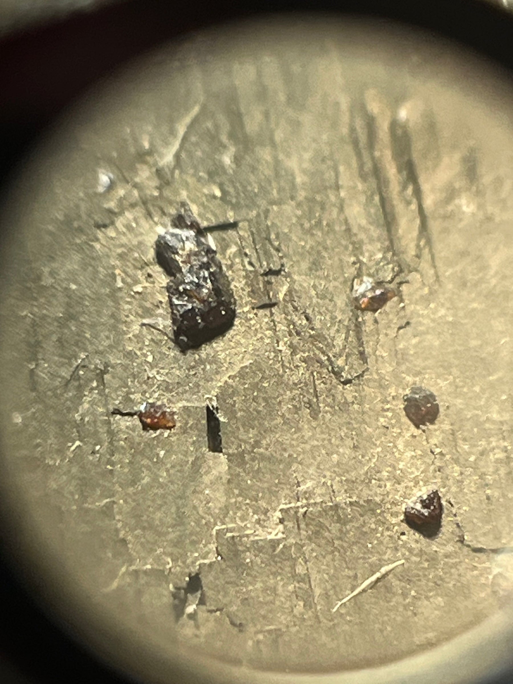 Pyritkristalle aus der berühmten Mine, bedeckt mit Mikrokristallen aus rotem Sphalerit (in dieser Farbe selten).