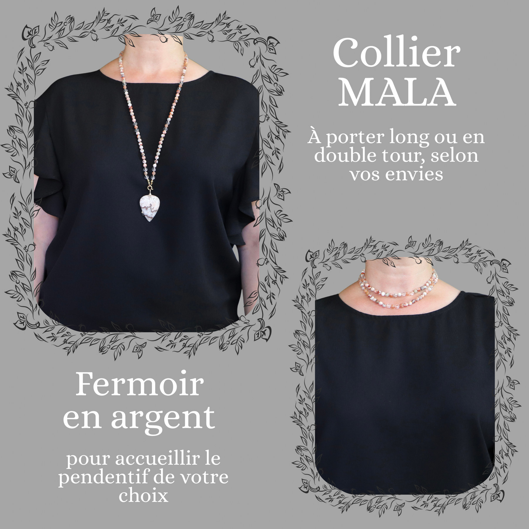Diese MALA vereint auf perfekte Weise Eleganz, Spiritualität und Vielseitigkeit : ein raffiniertes Schmuckstück für jeden Tag, das dank des Mondsteins, der für seine beruhigenden und intuitiven Eigenschaften bekannt ist, Sanftheit und Leichtigkeit ausstrahlt.