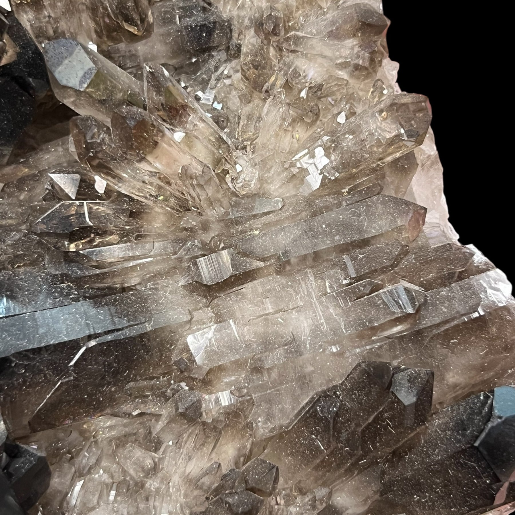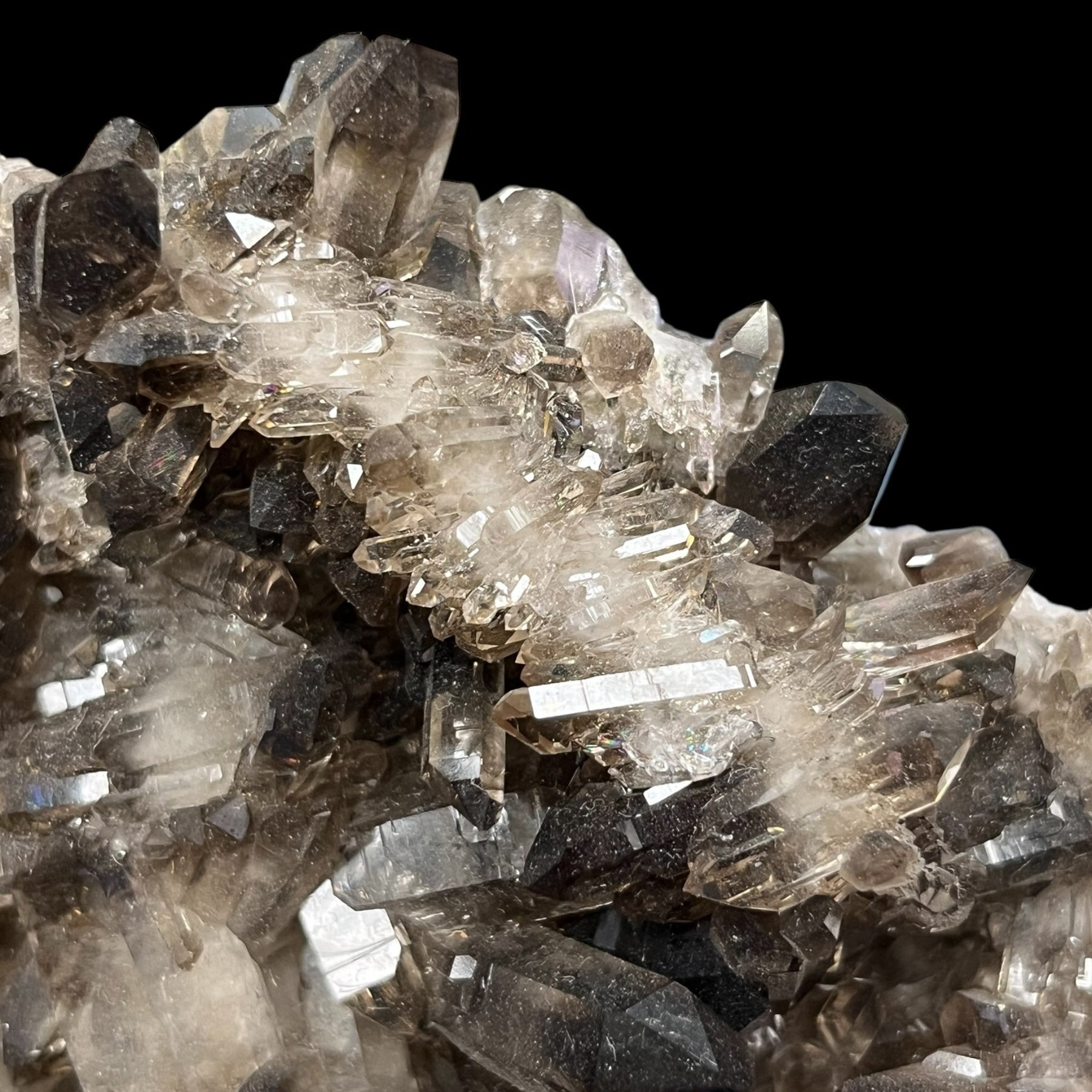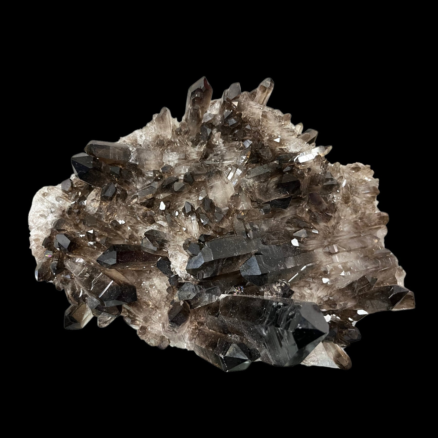 sehr schöne Rauchquarzdruse mit zahlreichen doppelt determinierten Quarzkristallen