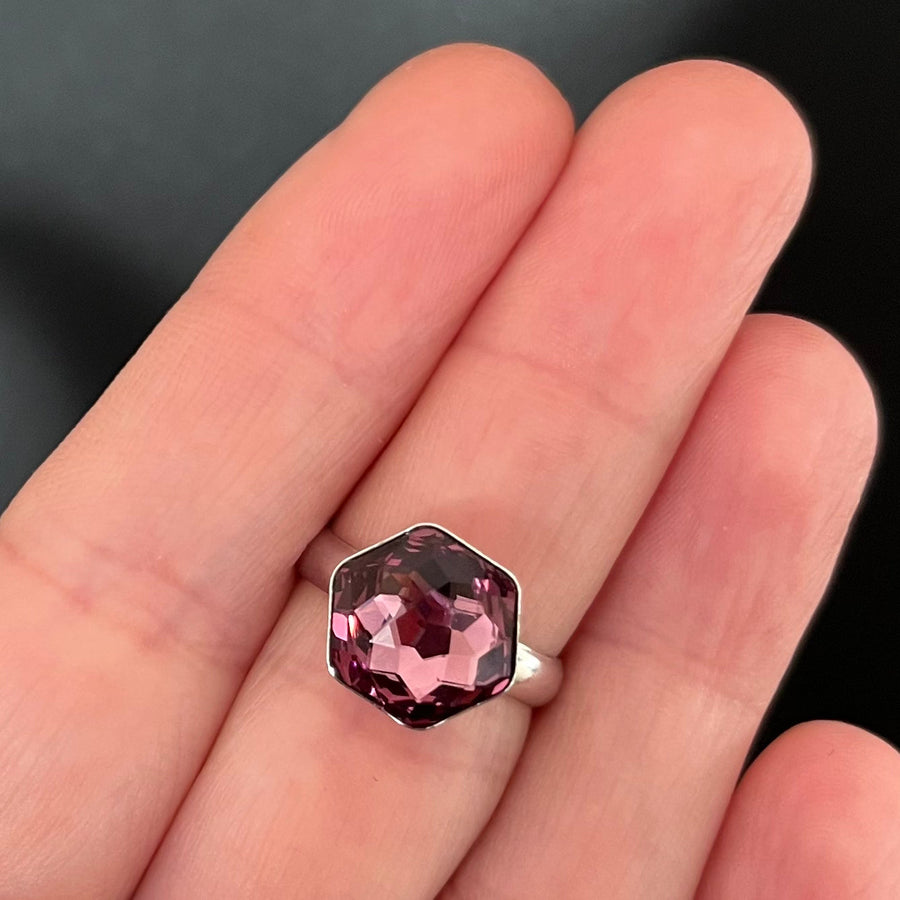 Schmuck aus der gleichen Kollektion : ein Anhänger mit oder ohne Kette, ein Armband, ein Ring (für kleine Größen verstellbar). Die Größe des sechseckigen Kristalls beträgt 10 x 12 mm.