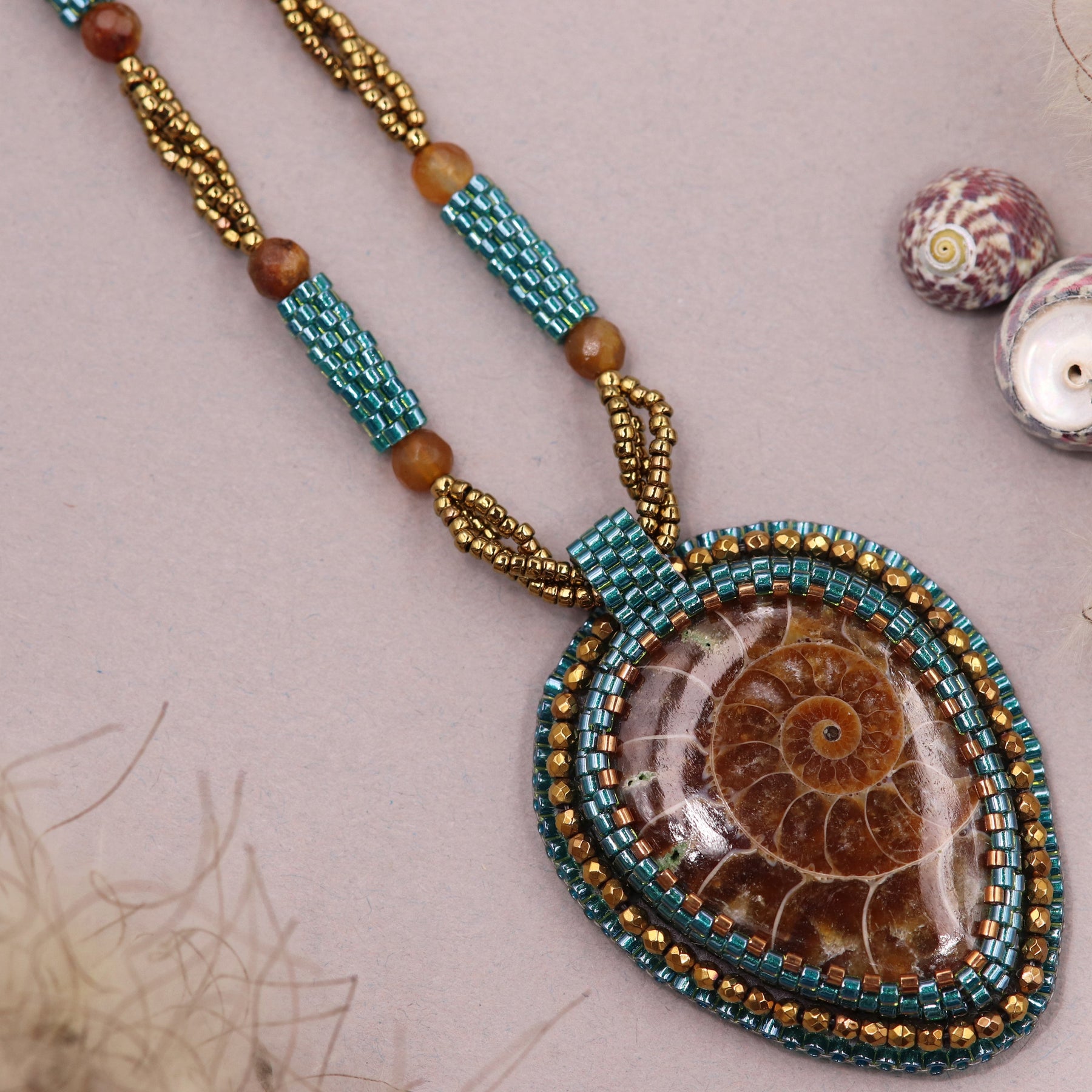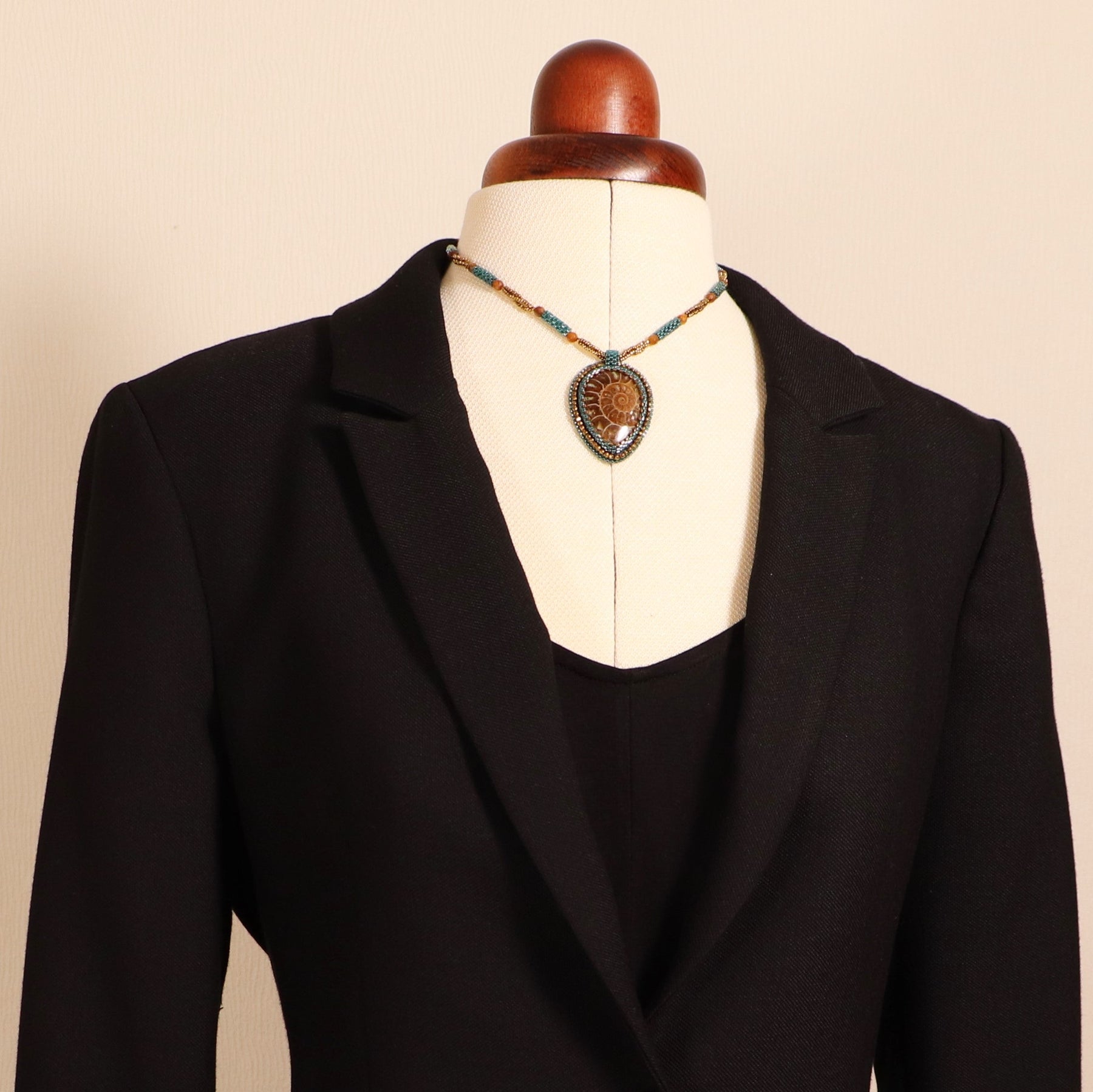 Embroidered Flower Necklace – Volcanic rhyolite, Miyuki beads