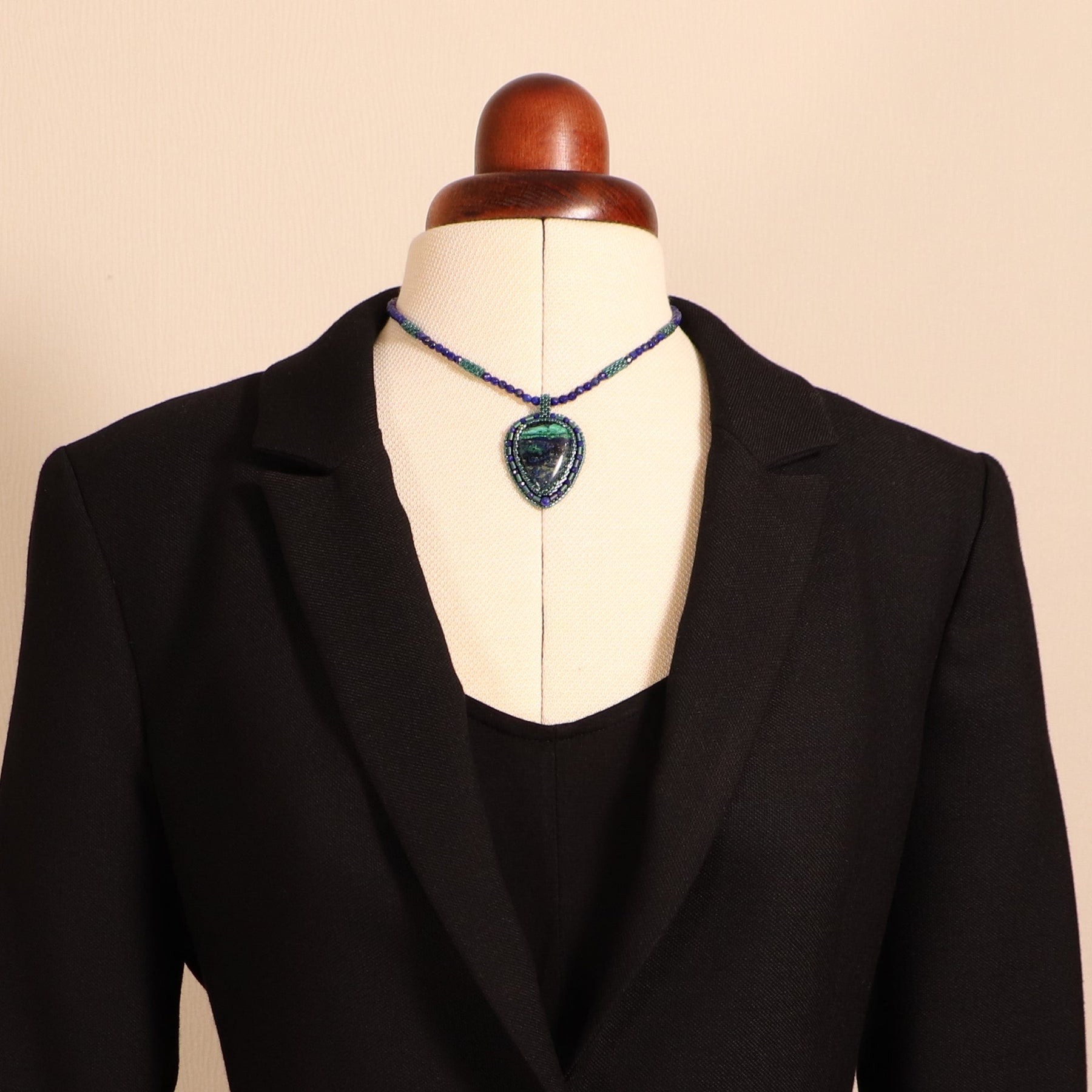 Embroidered necklace with Azurite Malachite and lapis lazuli