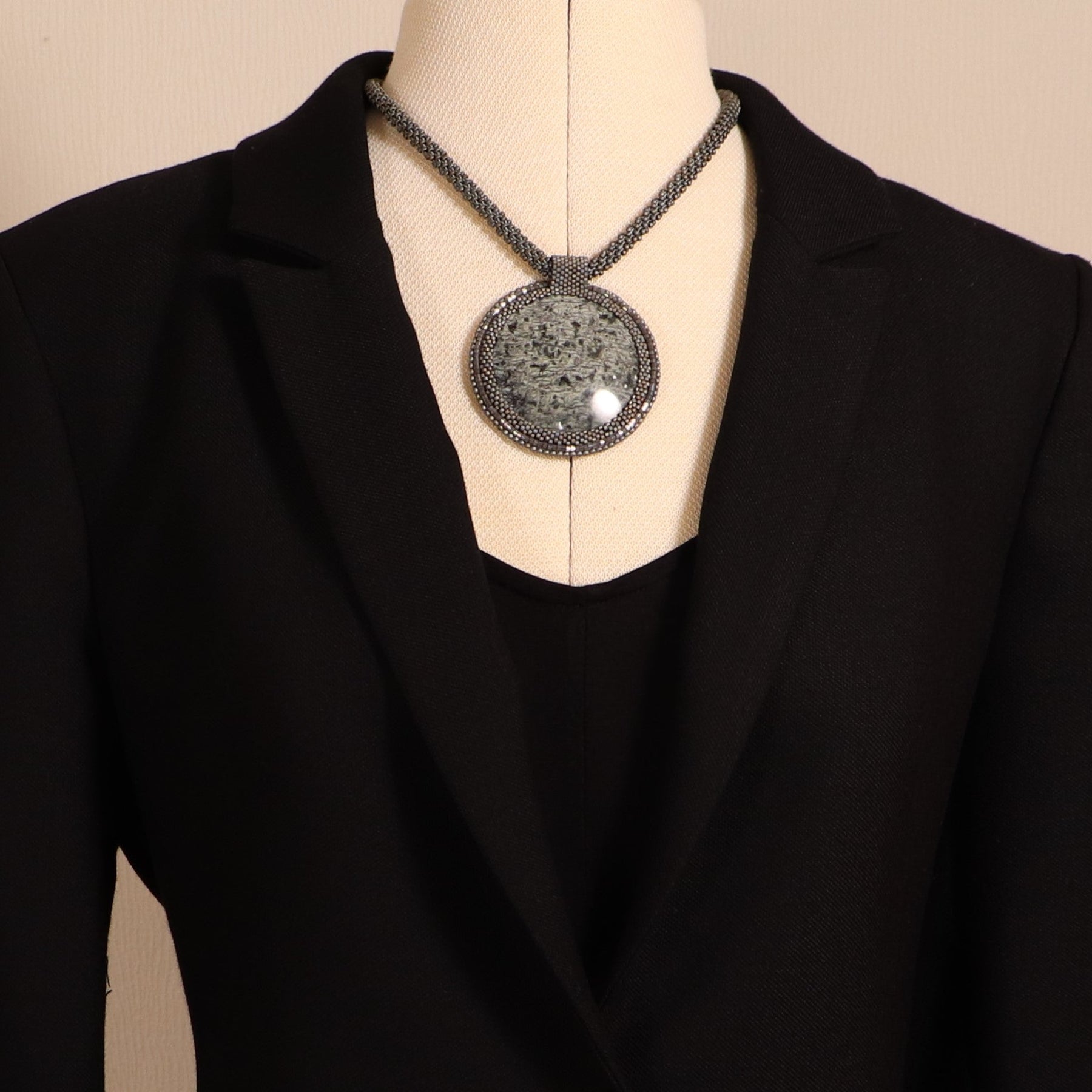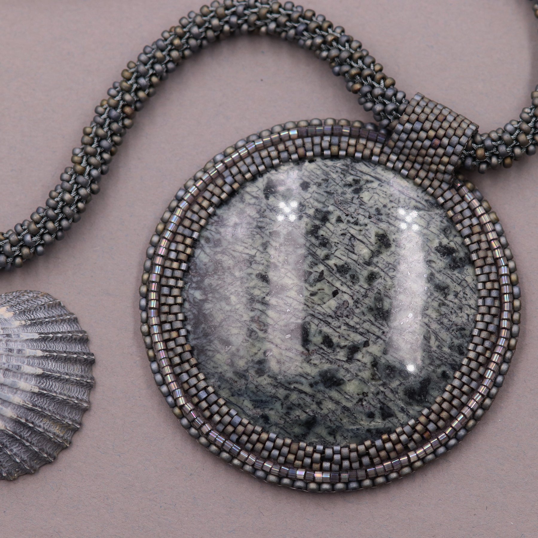Embroidered Flower Necklace – Volcanic rhyolite, Miyuki beads