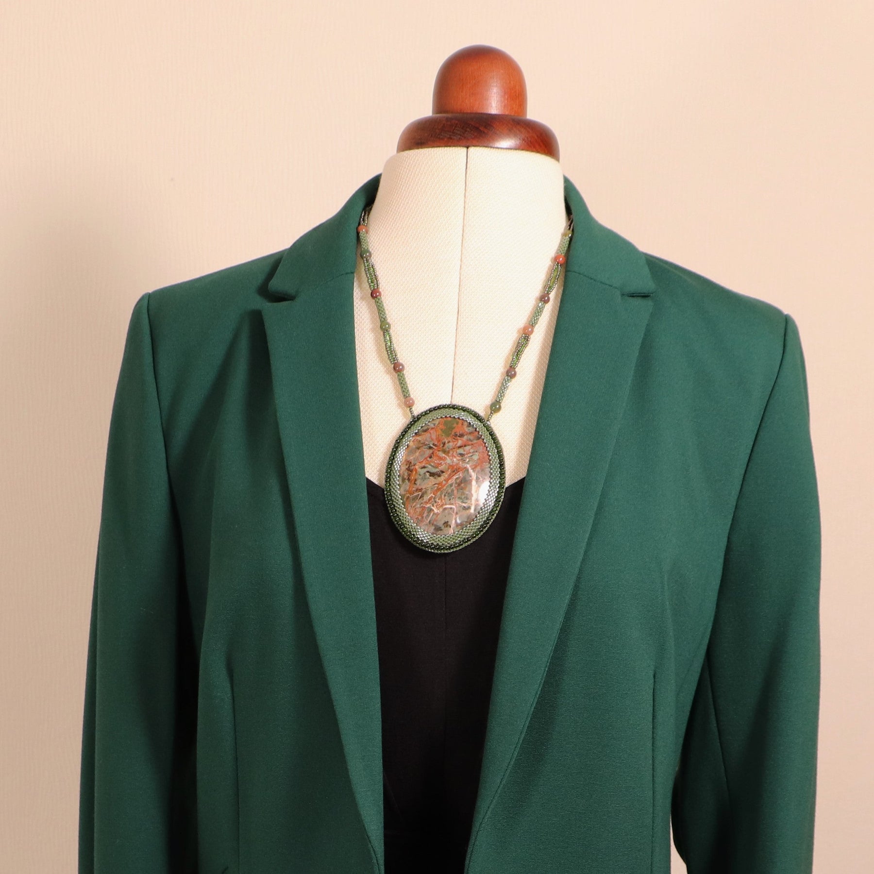 Embroidered Flower Necklace – Volcanic rhyolite, Miyuki beads