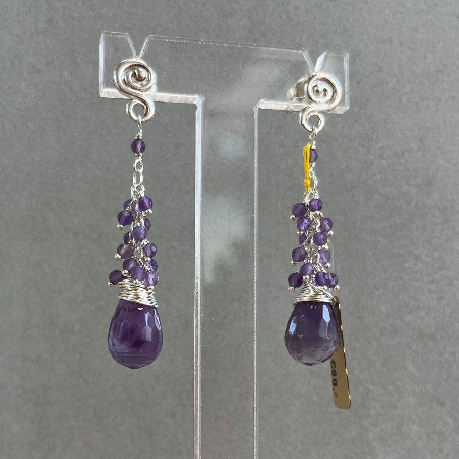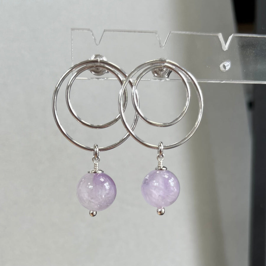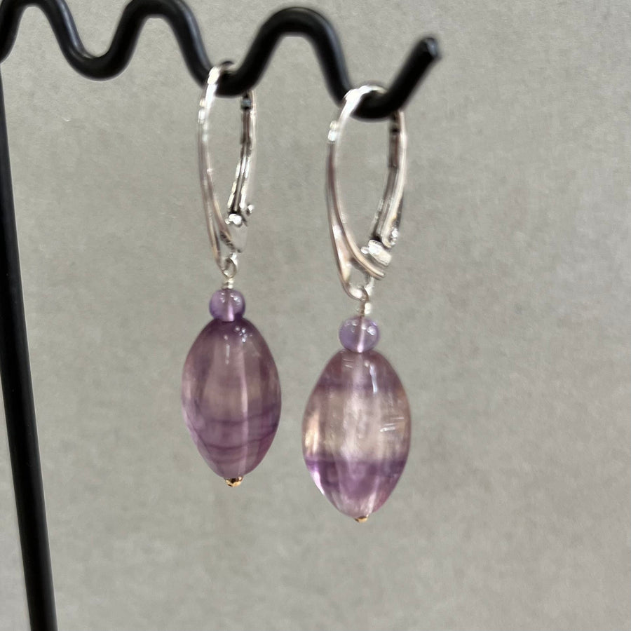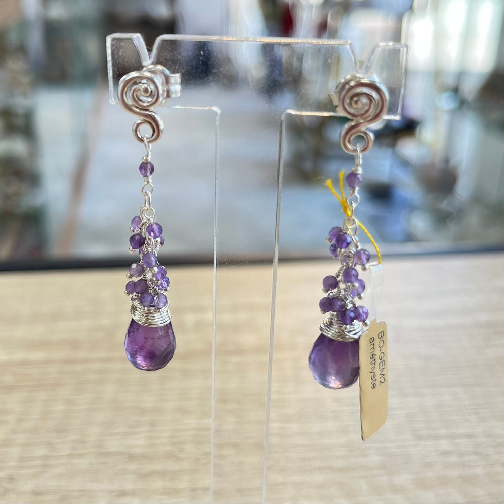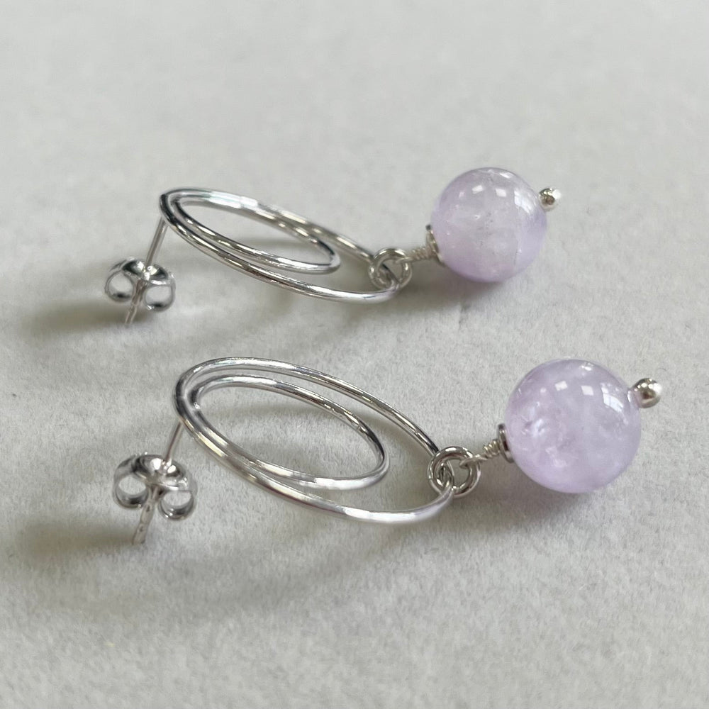 Earrings with natural stones - amethyst, green aventurine, in silver