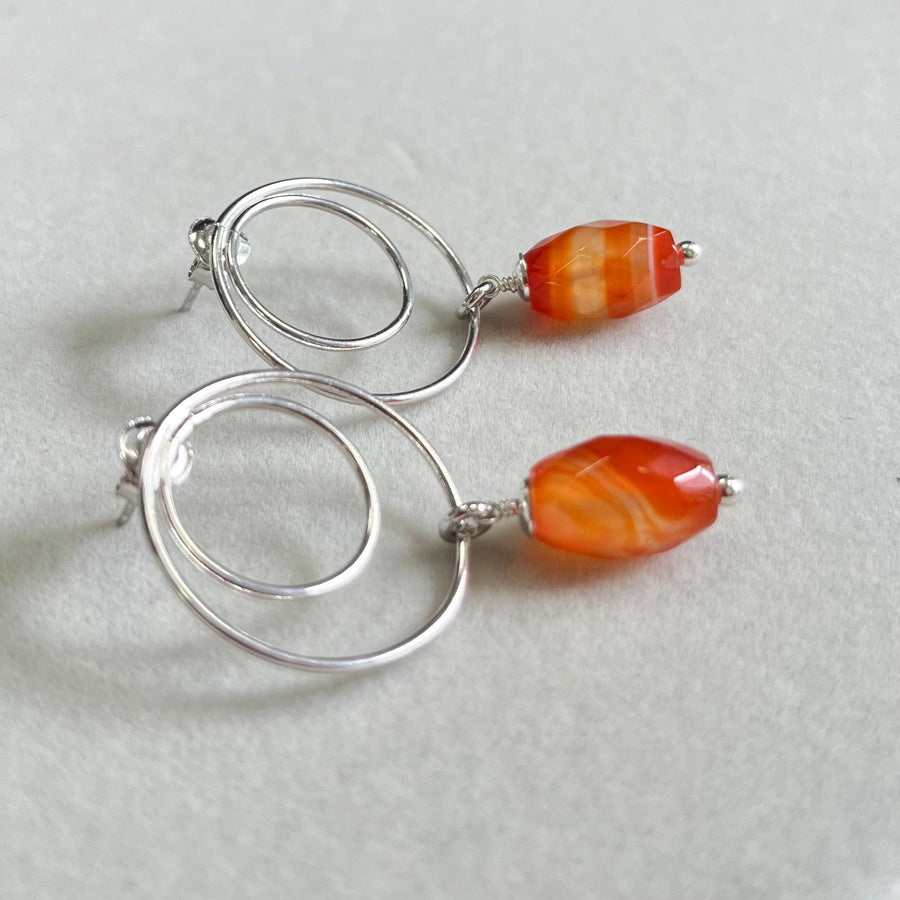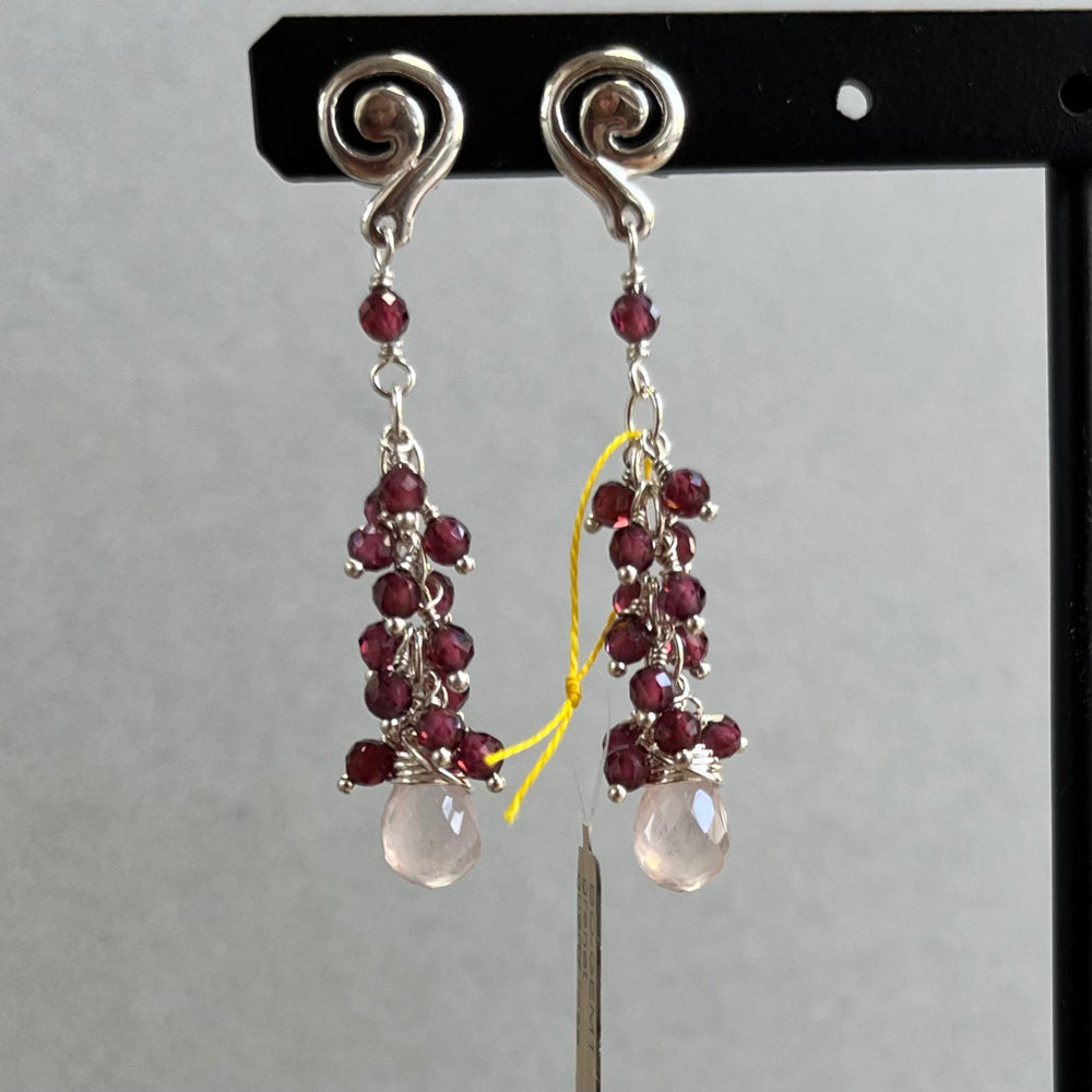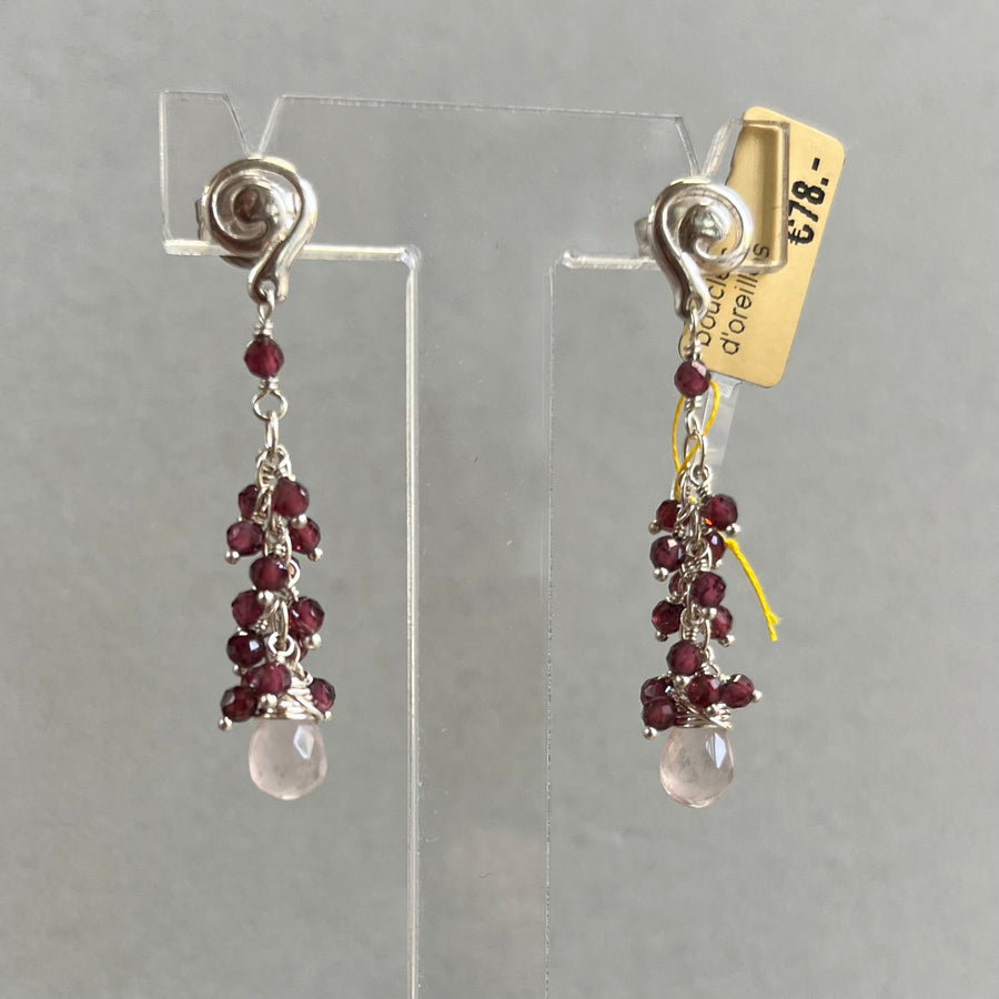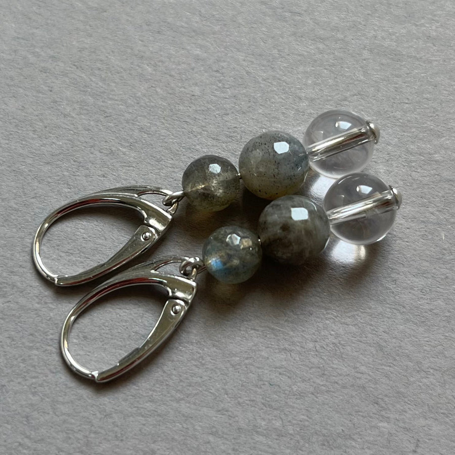 Earrings with natural stones (labradorite, rock crystal), in silver