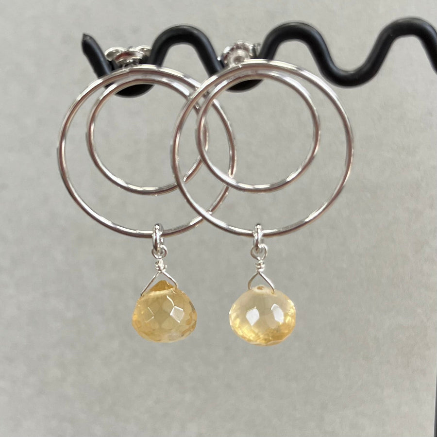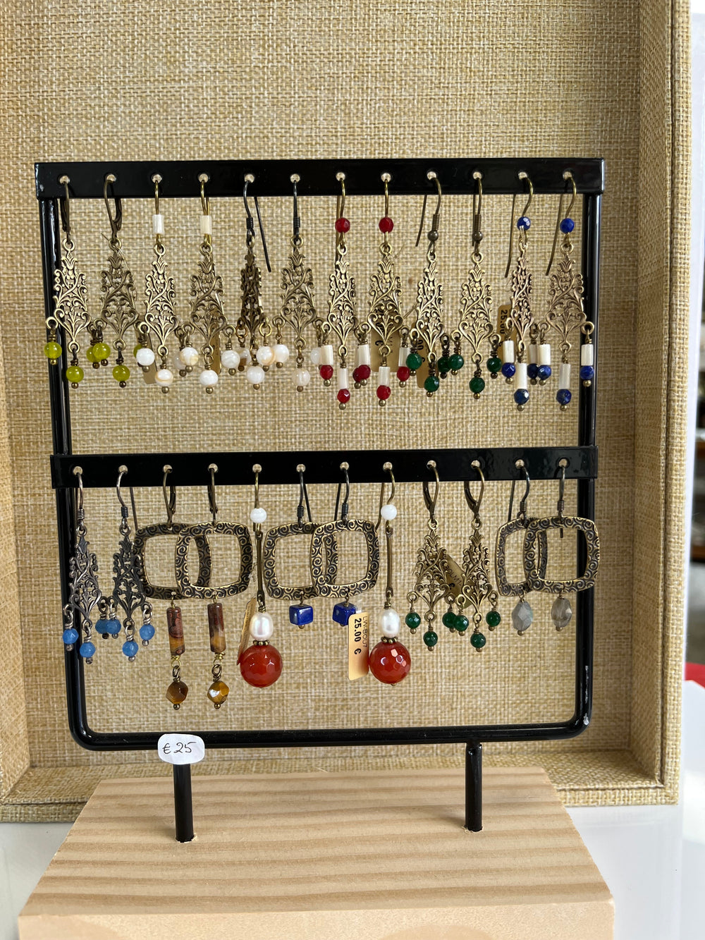 Earrings with a beautiful agate, in green, white, and red, set in silver.