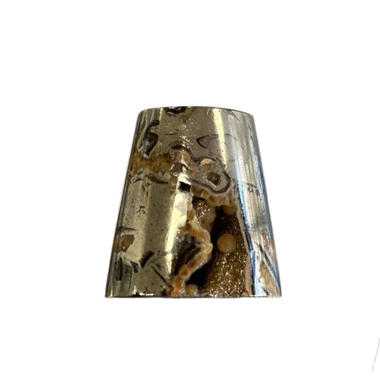 Pyritized ammonite, cabochon cut, geode, pseudomorph, fossil, unique piece for a designer
