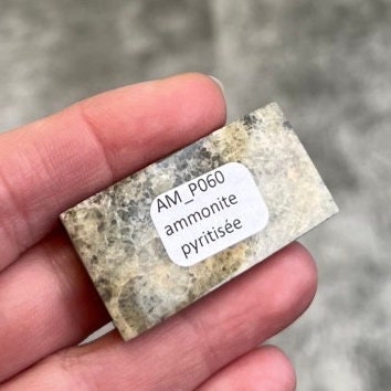 Pyritized ammonite, cabochon cut, geode, pseudomorph, fossil, unique piece for a designer