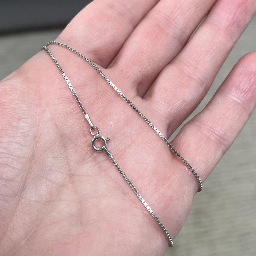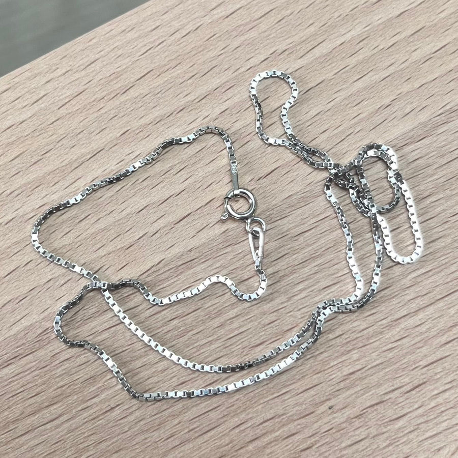 "Venice" chain with Venetian (cubic) links, in solid silver, rhodium-plated, 40 cm