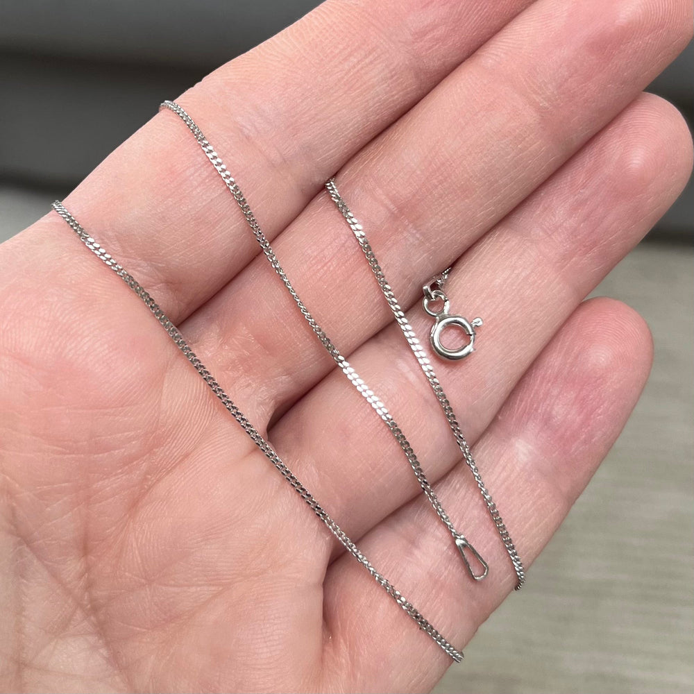Very fine curb chain in solid rhodium-plated silver, 42 cm