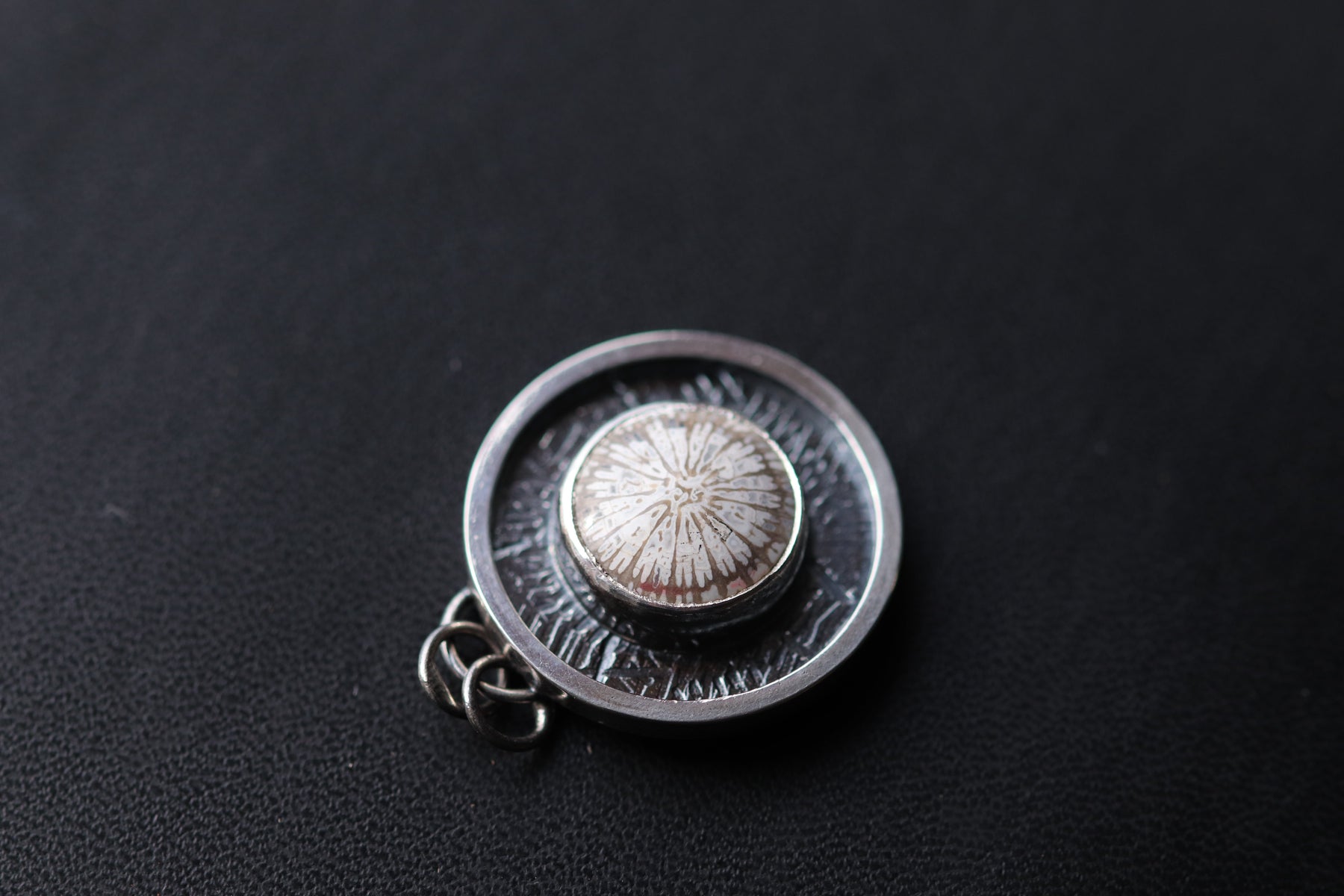 Rhodium-plated silver charm (mini pendant) with natural stones -