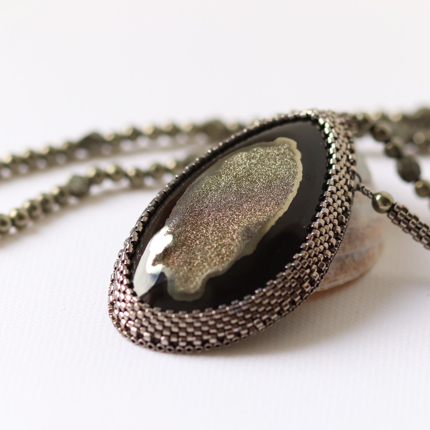 Rhodium-plated silver charm (mini pendant) with natural stones -