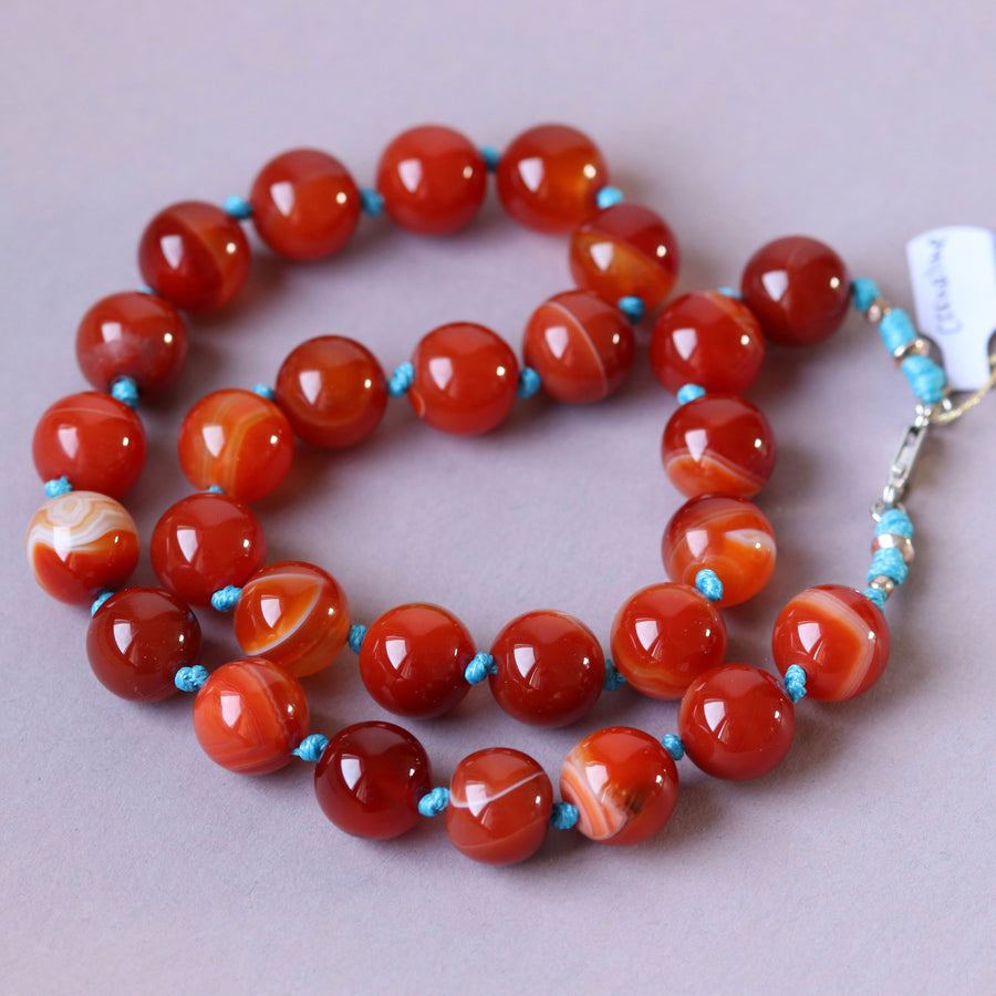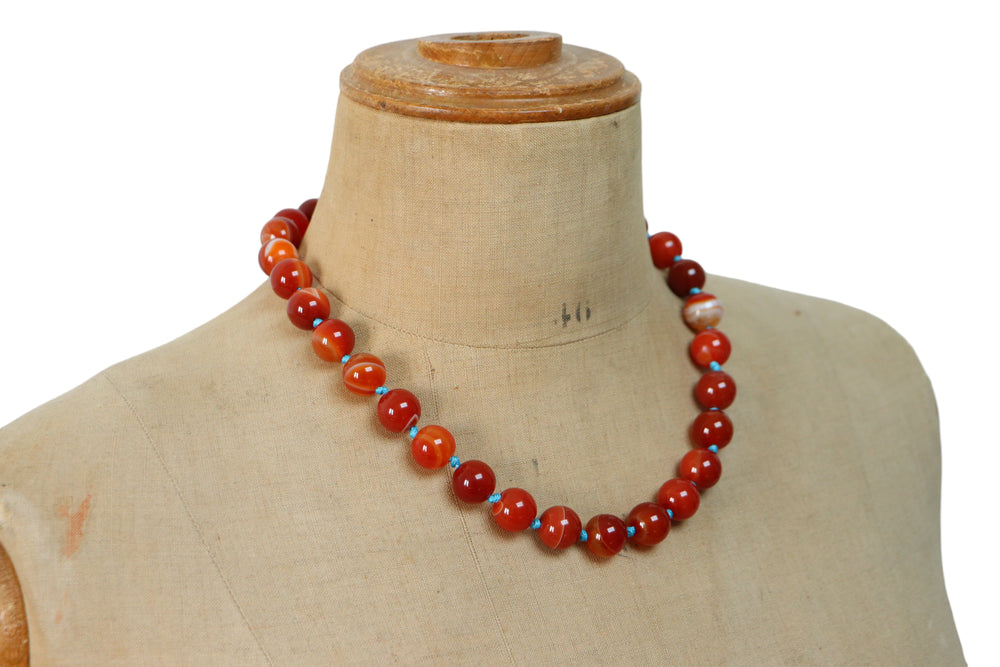 Knotted necklace in natural stones (carnelian) 51 cm