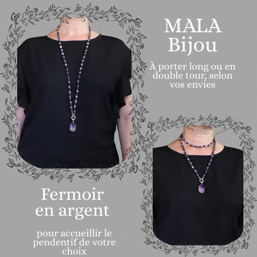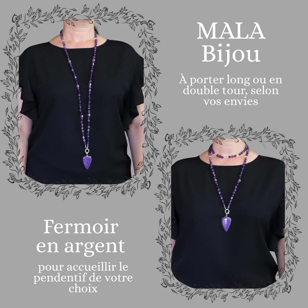 Mala necklace with amethyst pendant