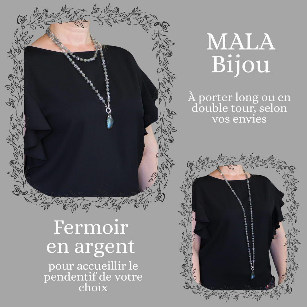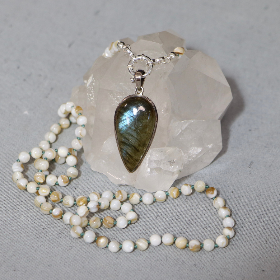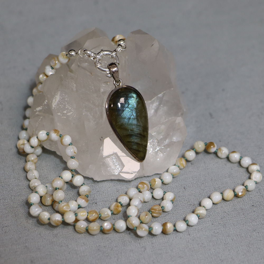 Mother-of-pearl mala necklace and labradorite pendant