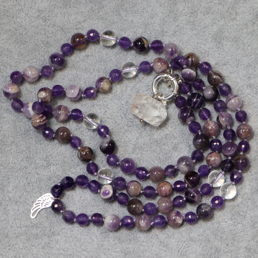 Amethyst Mala Necklace and Quartz Pendant