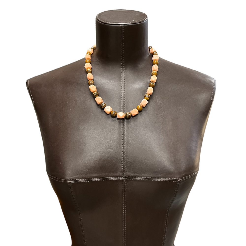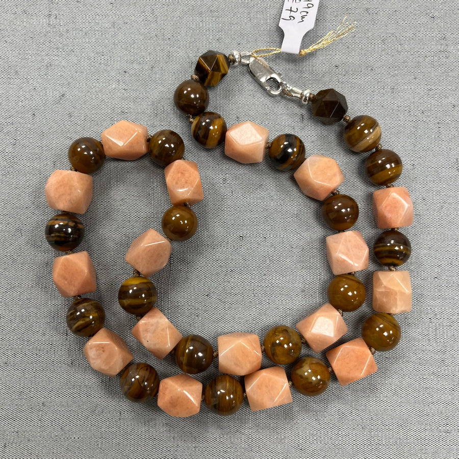 Knotted necklace in natural stones (tiger's eye, pink aventurine) 49 cm