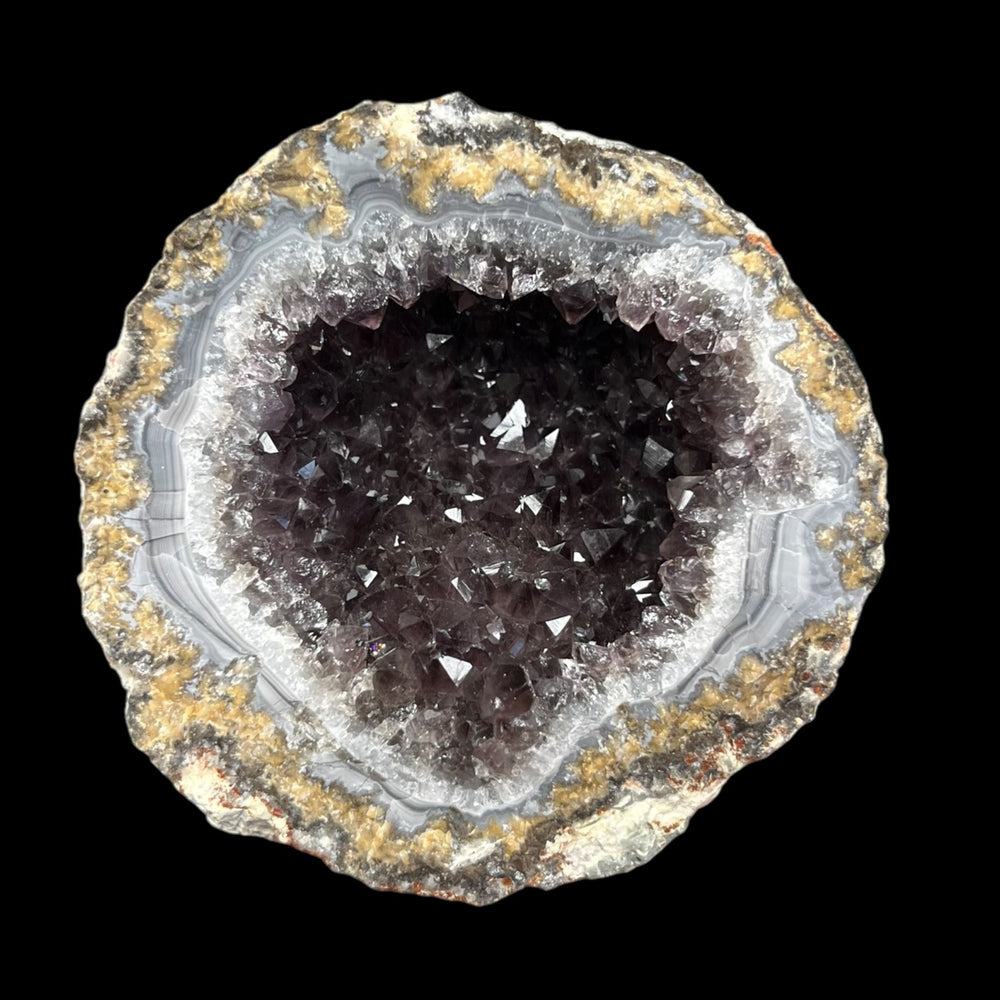 Coconut geode, amethyst, goethite, calcite, Las Choyas, Chihuahua, Mexico C34
