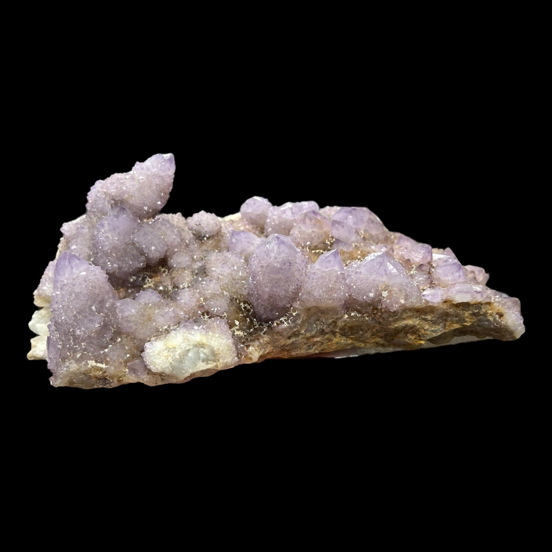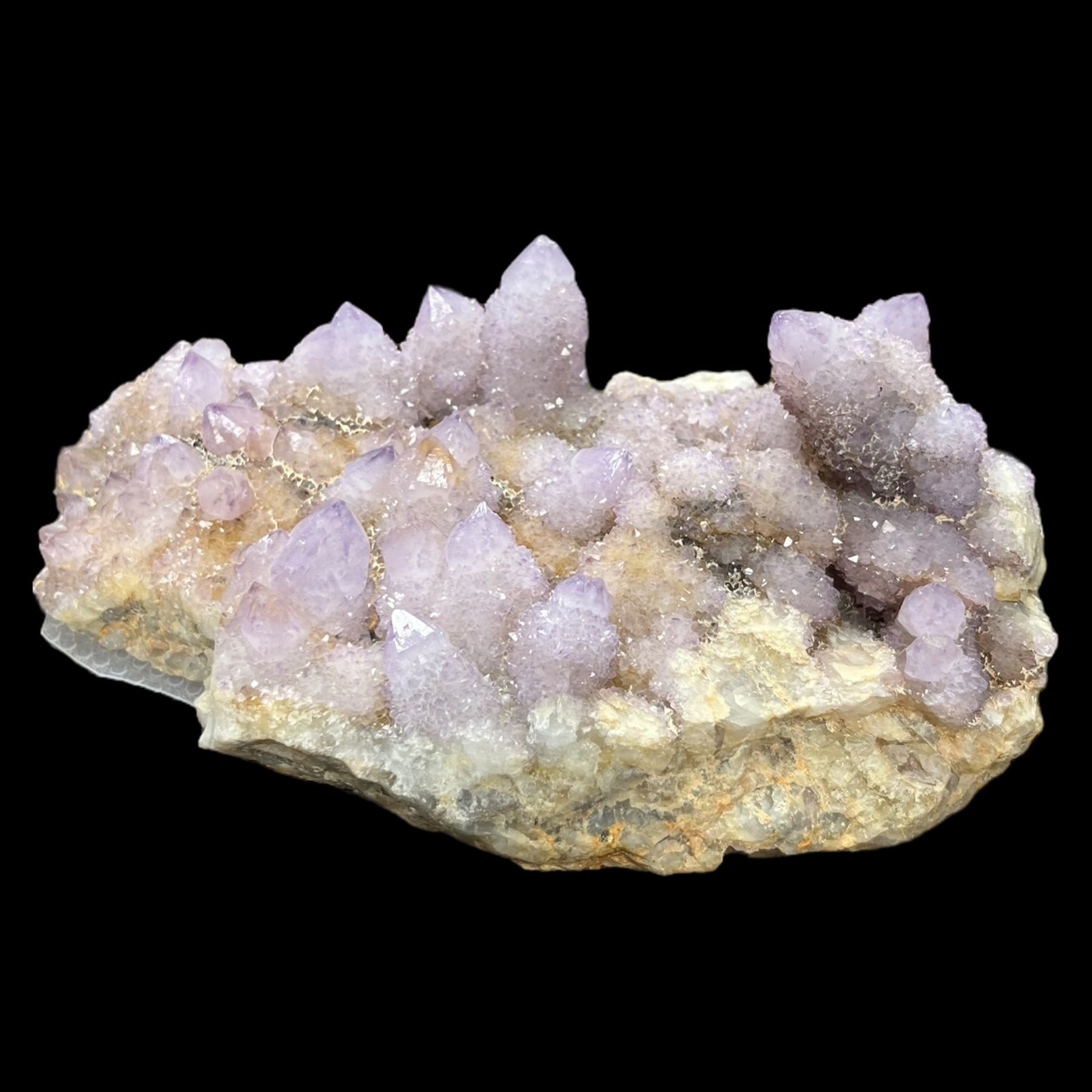 A very beautiful specimen displaying a cluster of amethyst crystals arranged in a cactus shape. One tip is chipped.