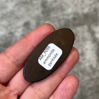Pyritized ammonite, cabochon cut, geode, pseudomorph, fossil, unique piece for a designer