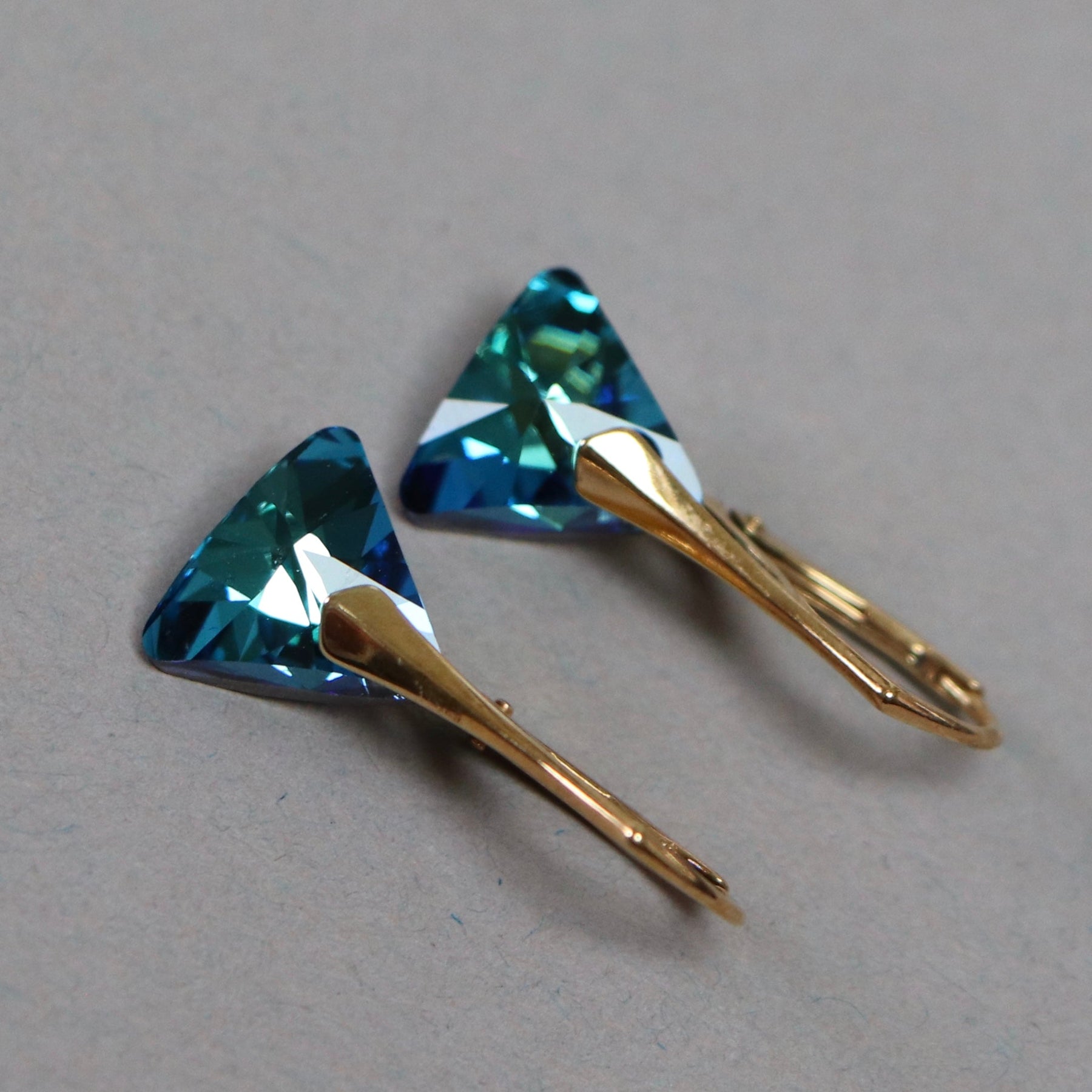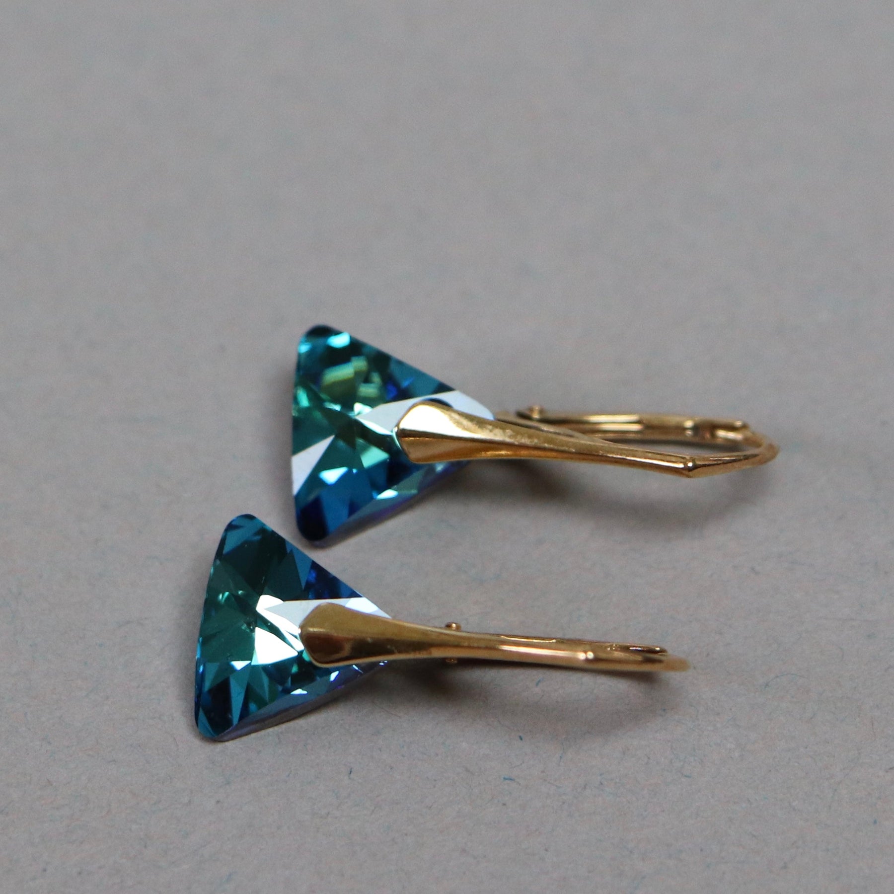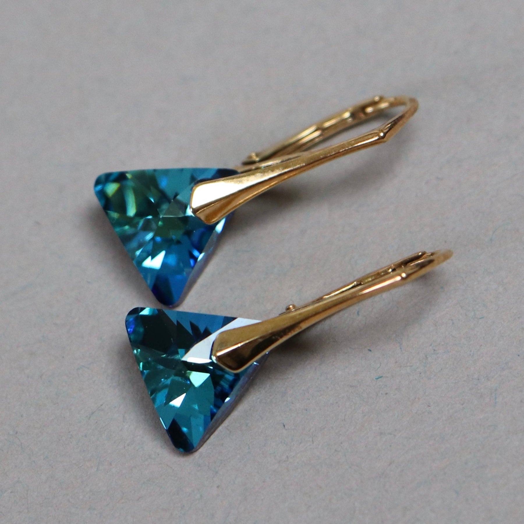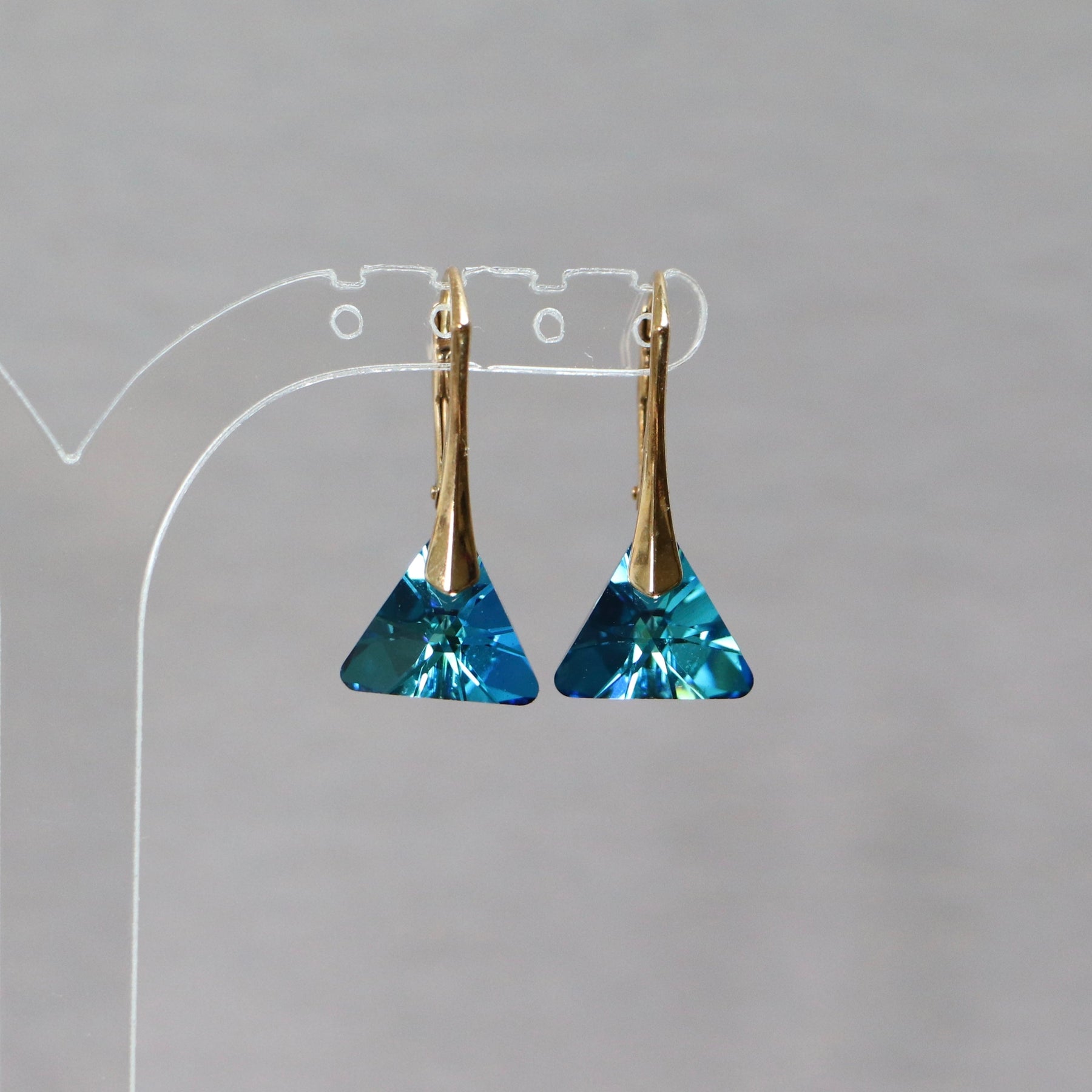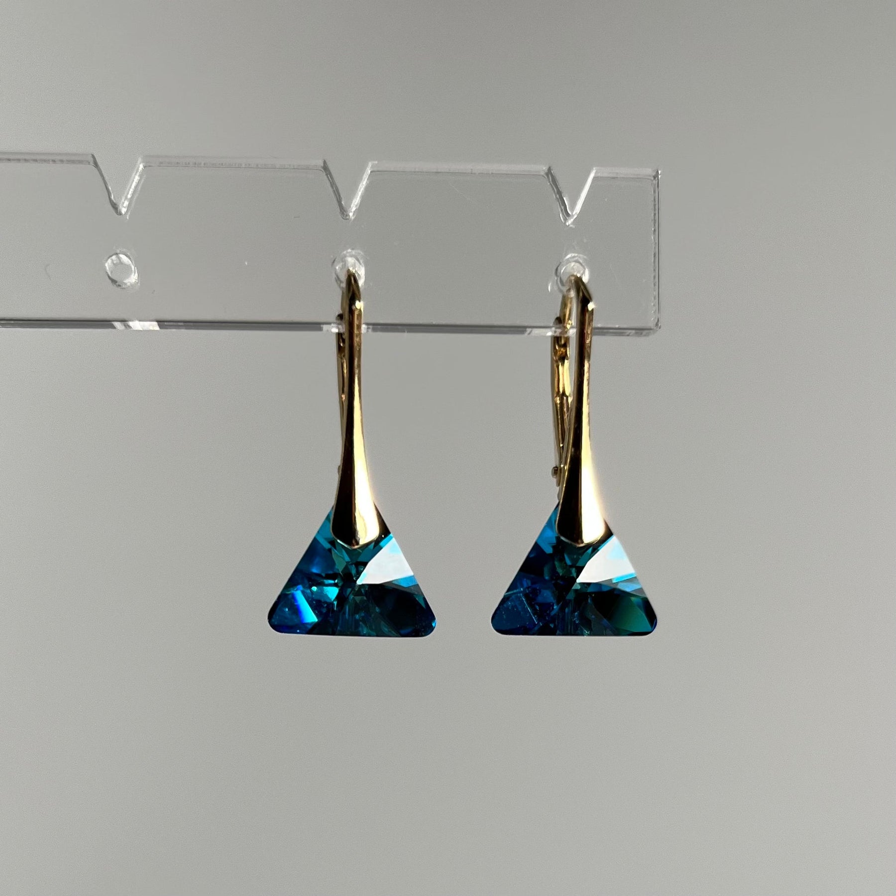 Boucles d'oreilles avec cristaux Swarovski, argent doré, bleu, BERMUDES