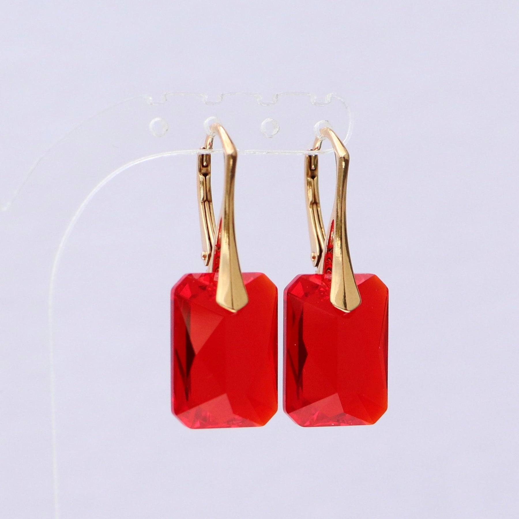 Boucles d'oreilles avec cristaux Swarovski, rouge vive, argent doré, NOEMIE