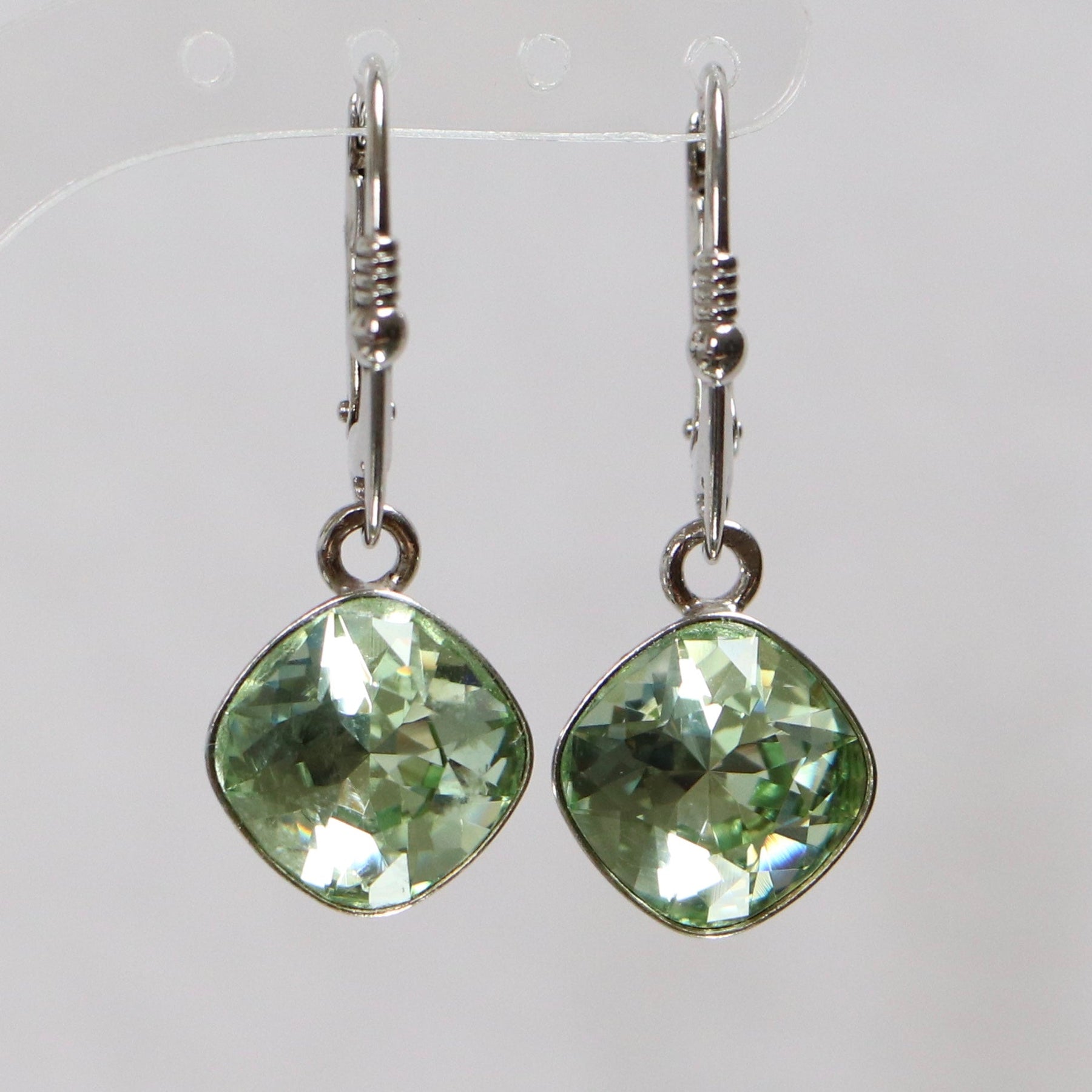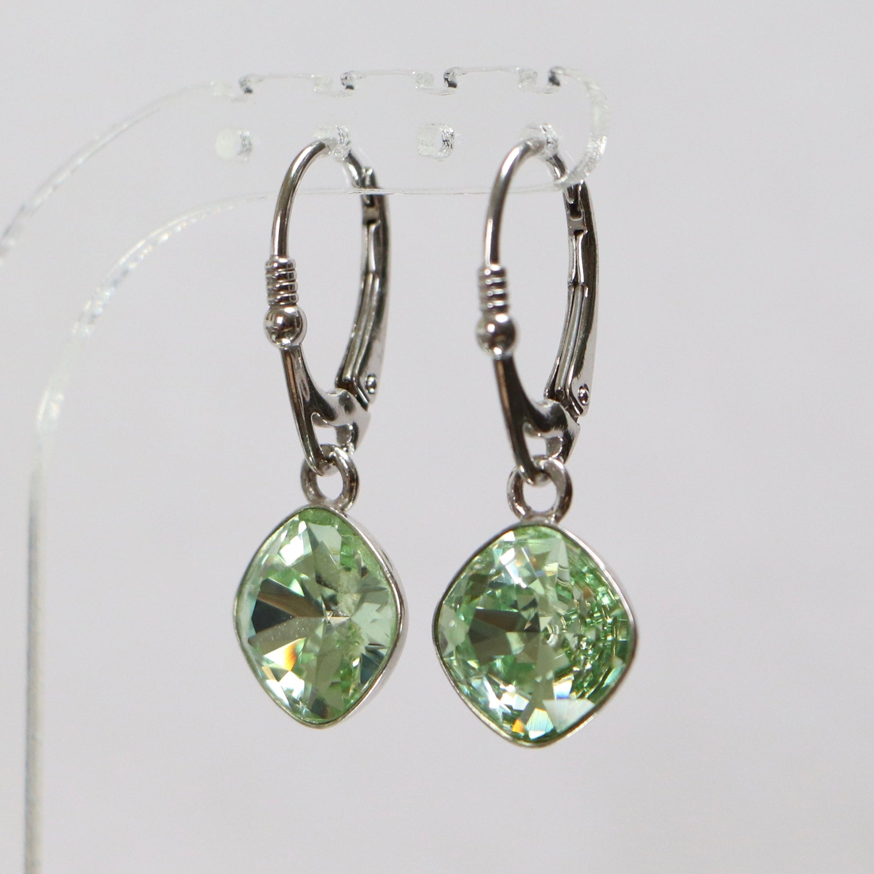 Boucles d'oreilles, cristaux Swarovski, argent rhodié, vert clair, MANON