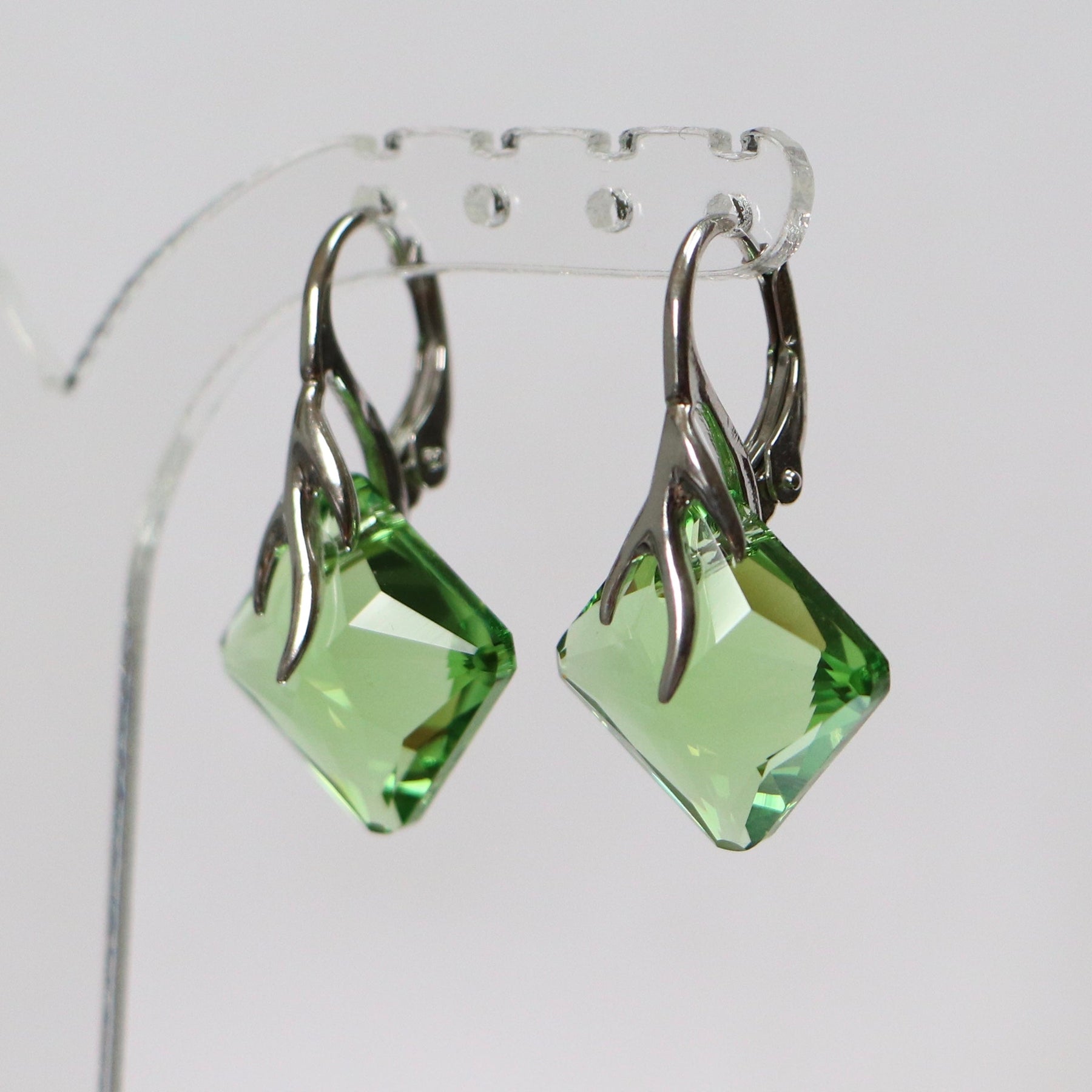 Boucles d'oreilles, cristaux Swarovski, argent rhodié, vert olive, AGATHE
