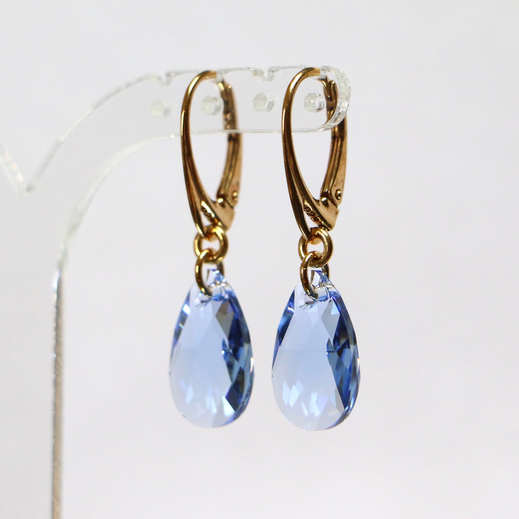 Boucles d'oreilles (crochets, dormeuse, puces ou à clips), cristaux Swarovski, argent doré, collection LARME, bleu clair