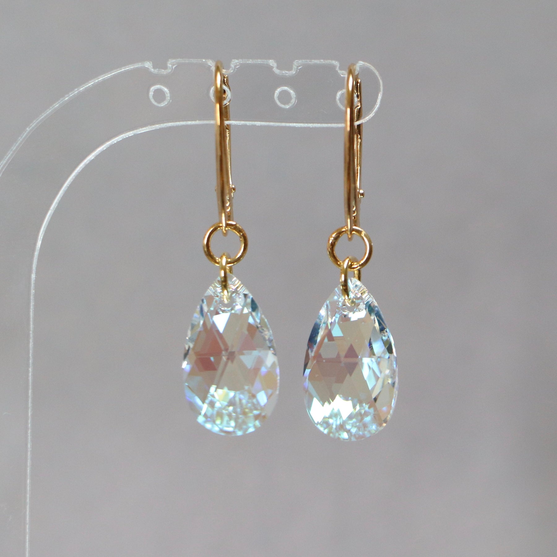Boucles d'oreilles (crochets, dormeuse, puces ou à clips), cristaux Swarovski, argent doré, collection LARME, incolore AB