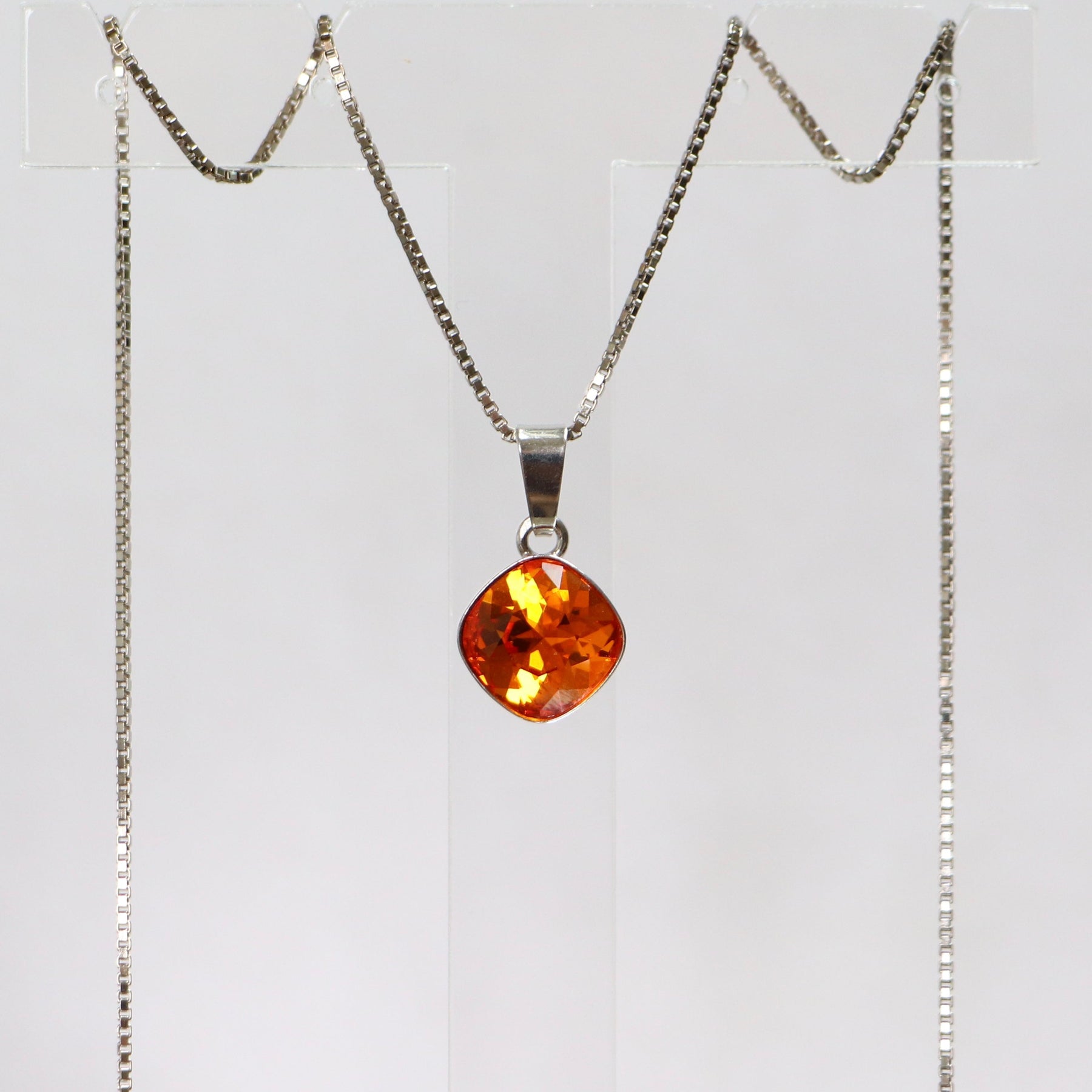 Pendentif, cristaux Swarovski, argent rhodié, orange, MANON